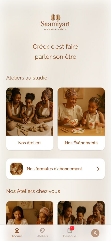 L’art n’a jamais été aussi accessible. Réservez vos ateliers, commandez votre matériel et rejoignez une communauté créative unique directement depuis votre mobile.